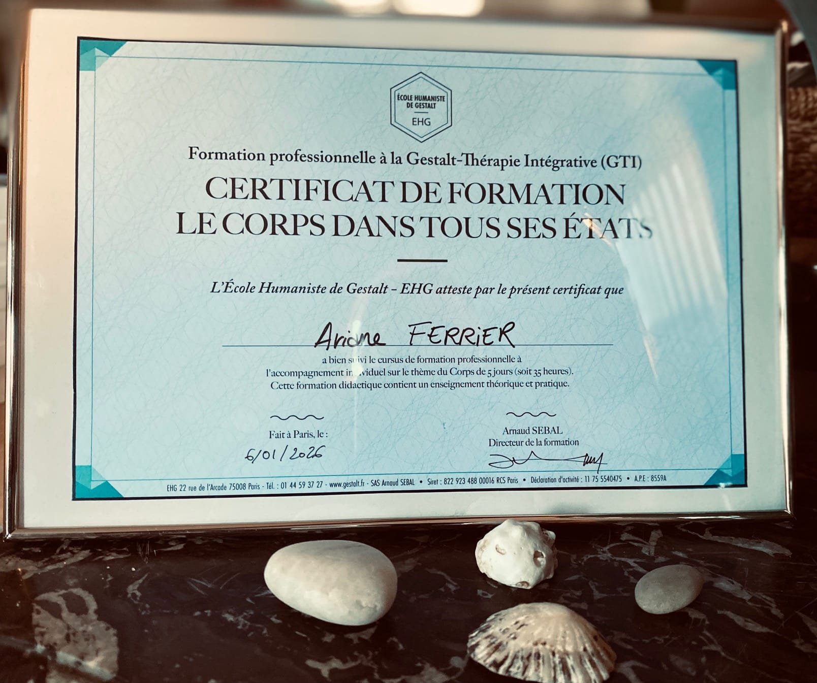 J'ai également achevé une formation complémentaire "Le Corps dans tous ses états". Je suis actuellement en formation sur le thème de "la Sexualité".